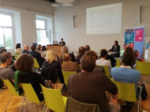 Nach der Begrüßung durch Stadträtin Tina Wirnsberger und Gemeinderat Peter Piffl-Percevic konnten die Teilnehmerinnen und Teilnehmer zunächst drei exzellente Referate hören. So schilderte die Historikerin Victoria Kumar anlässlich des Gedenkjahres 2018 über Vertreibungs- und Exilerfahrungen von jüdischen Österreicherinnen und Österreichern und beschrieb anschaulichst den beruflichen Neuanfang in den jeweiligen Zufluchtsländern. Frappierende Ähnlichkeiten zu heutigen Situationen zeigten sich auch im Impulsreferat von Silvana Weiss (Uni Graz), die sich in ihrem Vortrag der aktuellen Arbeitsmarktintegration von Geflüchteten in der Steiermark widmete. Christina Lind (AMS Steiermark) brachte aktuelles Datenmaterial und strategische Komponenten. Aus den Vorträgen ergaben sich stets gewisse ähnliche Situationen, Herausforderungen und Schwierigkeiten. Insbesondere wurde auf die Dequalifizierung von Frauen eingegangen. Beim Unternehmens-Roundtable nahmen Vertreterinnen und Vertreter unterschiedlichster Branchen (Immobilien, Gastronomie, Produktion, Handwerk) teil und berichteten über Beispiele gelungener betrieblicher Vielfalt.